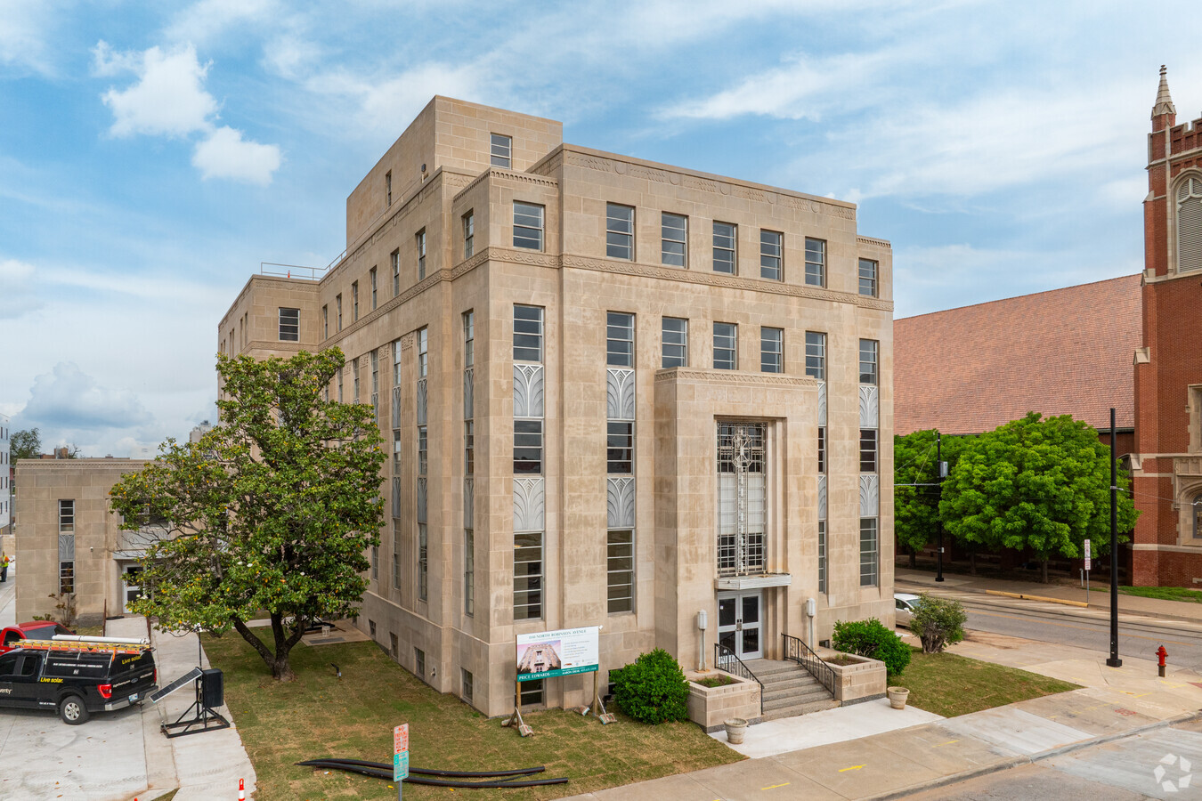 1141 N. Robinson is a beautiful cast limestone with aluminum panels. The 5-story Art Deco Building constructed in 1949 was the home for the Oklahoma Baptist Convention, directly south of the First Baptist Church in Oklahoma City, Oklahoma.